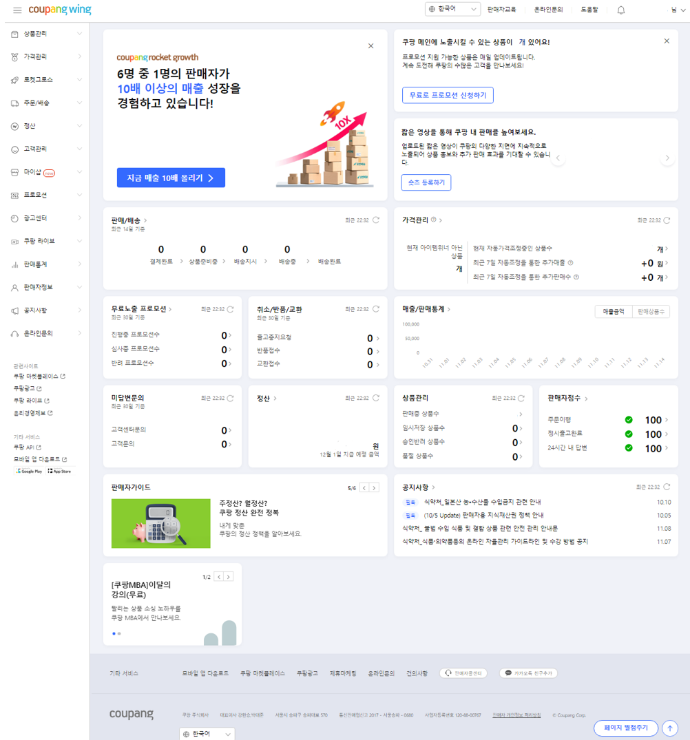 쿠팡 WING 판매자센터 이용방법